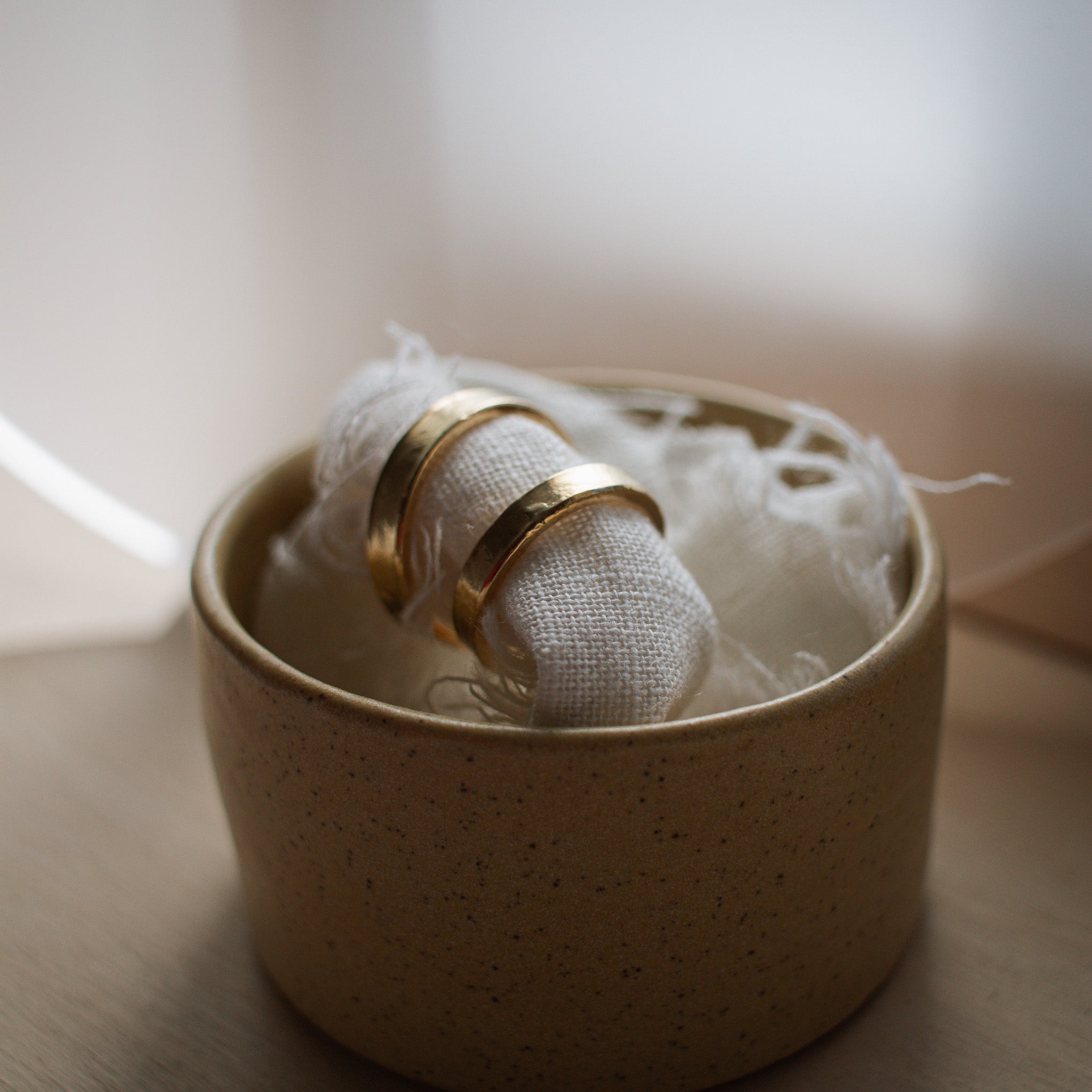 “Haïke maakte al enkele juwelen voor ons. Eerst een prachtige ketting met initialen en een lotusbloem. Zo draag ik mijn dierbaren dicht bij m’n hart. Hierover waren we al heel tevreden. Ook het ontwerp van onze trouwringen vertrouwden we toe aan Haïke. En met wat een resultaat. De ringen zijn prachtig. Helemaal op maat en precies hoe we ze wilden. Heel erg bedankt om onze herinneringen en dromen tot leven te brengen!